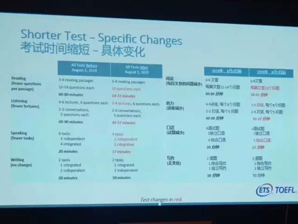 自今年8月1日起,阅读部分的考试将调整为54分钟内完成3篇文章阅读和30道题目。由此,我们发现在阅读部分平均每篇文章的实际做题时间只减少了2分钟,由20分钟变成18分钟,而题目数量却最多是每篇能减少4道题目。